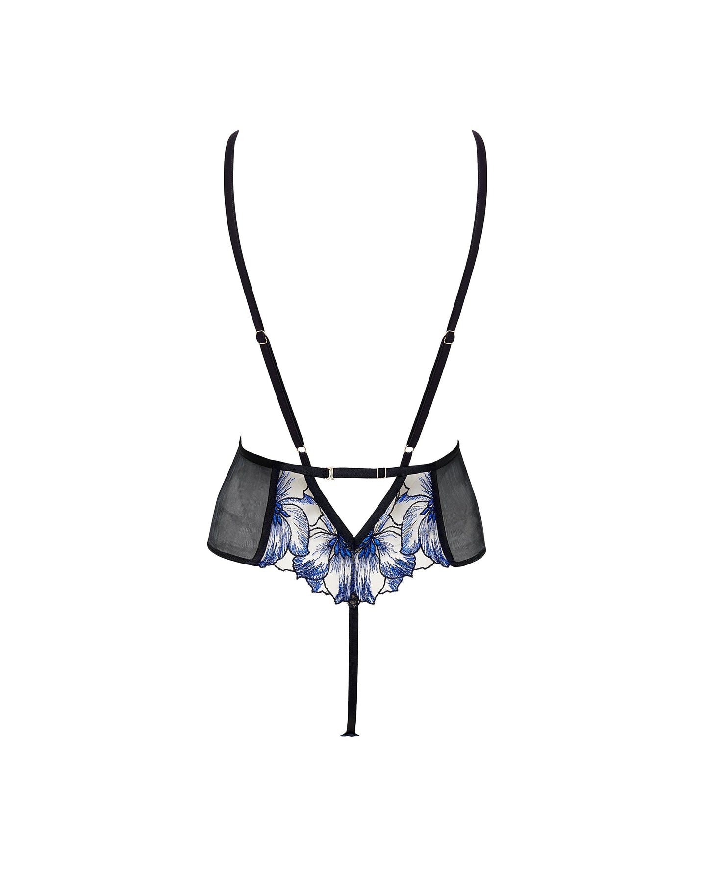 Exquisitely crafted and ultra-feminine, the Lyandra Floral Embroidered Bodysuit in blue is designed with a unique plunge neckline and intricate tonal blue floral embroidery. Stretch mesh side panels and adjustable straps ensure it has a tailored fit, while the minimal G-string design and a hypoallergenic bamboo gusset.