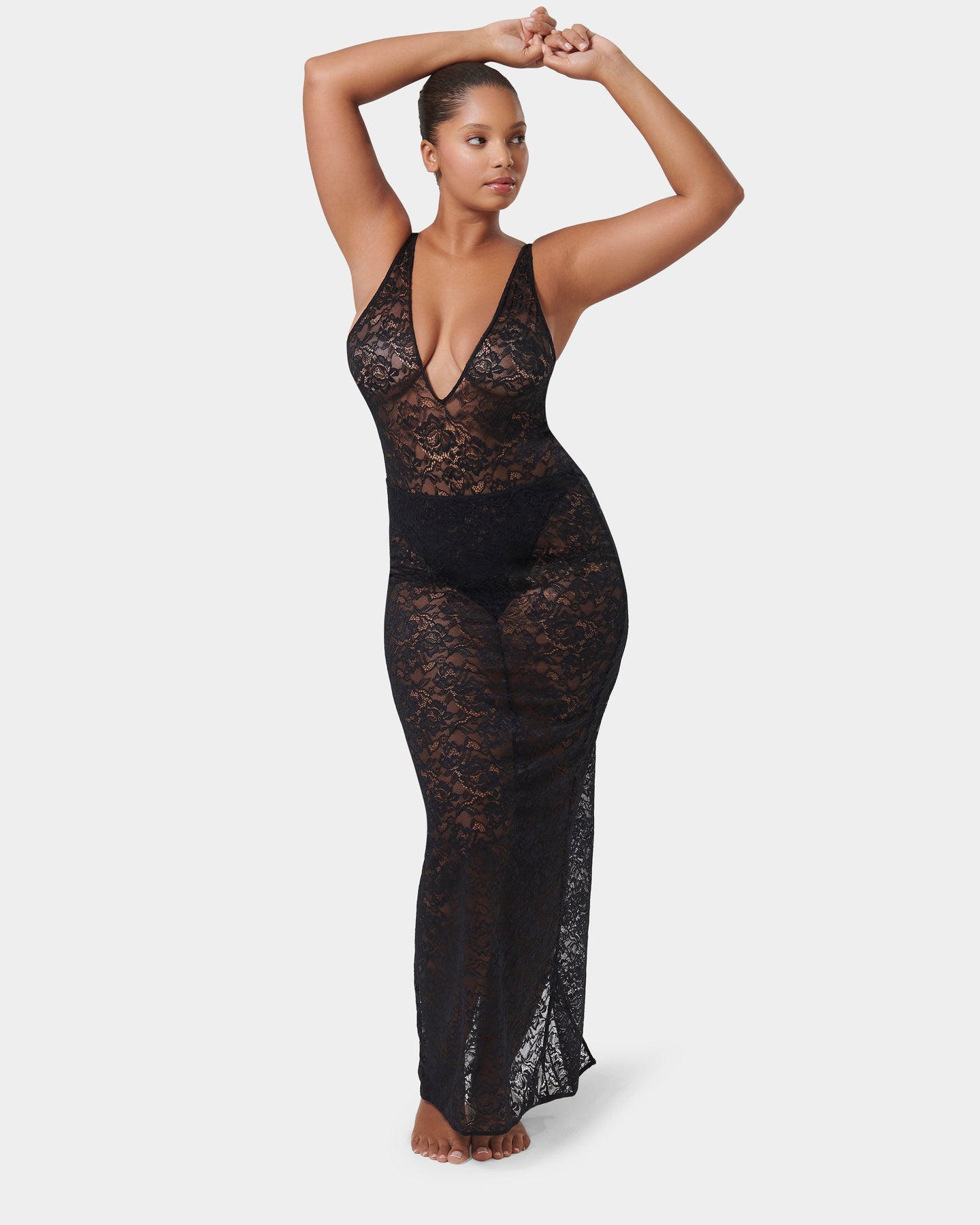 Crafted from premium semi-sheer floral stretch lace, this bias-cut skirt features an elasticated waistband and a chic rear split. A versatile styling piece that works seamlessly as both lingerie and a skirt. Perfect when worn with or without the matching top or bodysuit, offering multiple styling options.