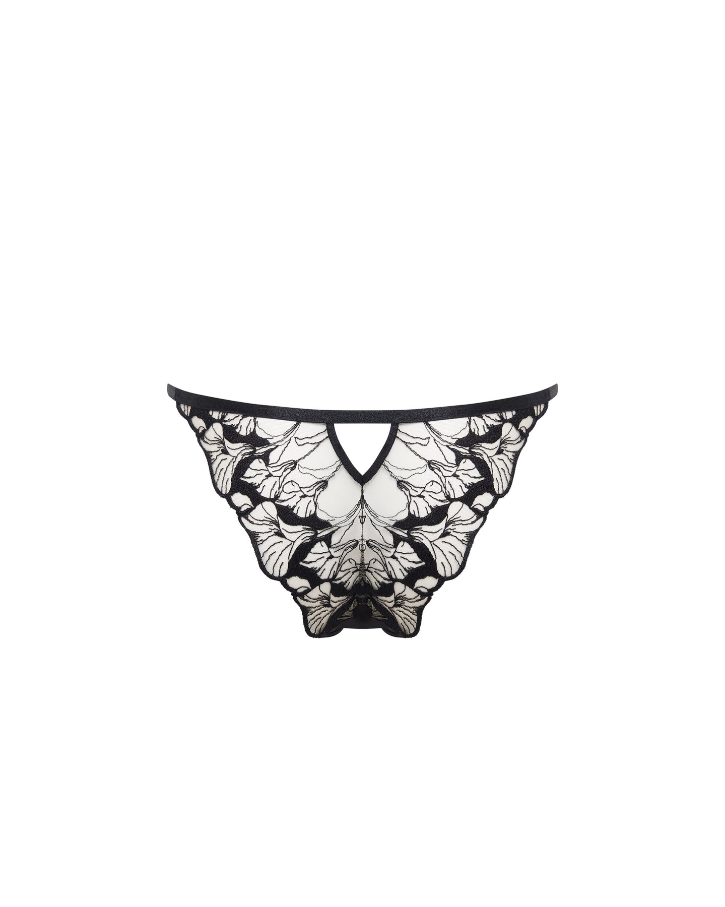 A stunning addition to your black lace lingerie collection, the Kalmia ECO Brief in Black/Sheer complements your eco-conscious wardrobe with recycled fabrics and intricate floral embroidery. Its triangle keyhole detail at the back adds stylish flair, combining comfort with elegance.