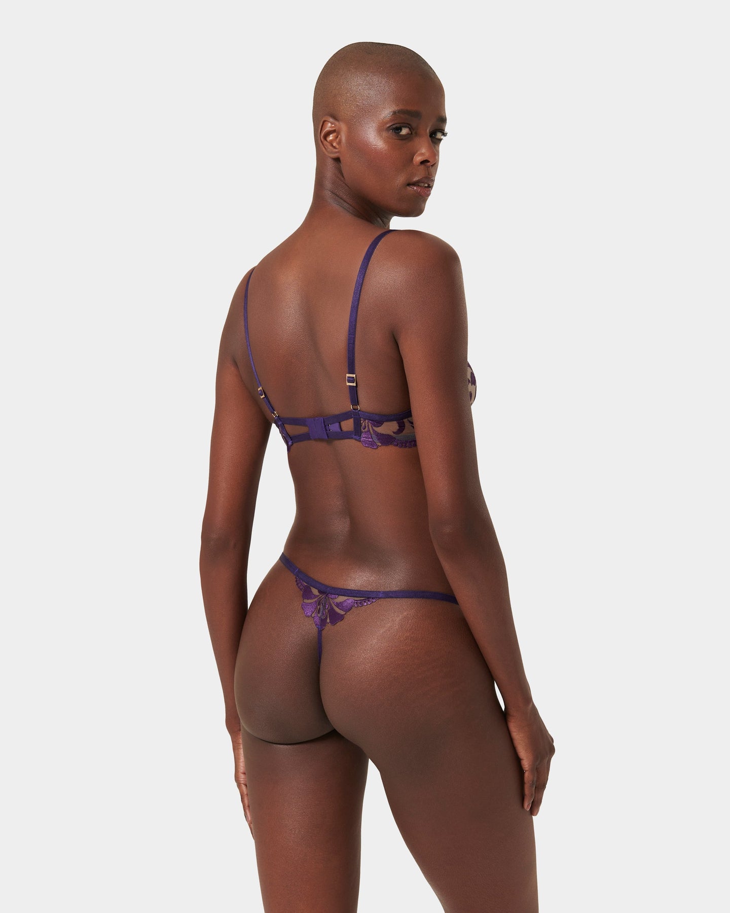 A fresh update to an already popular style, the Leonora Thong is presented in Acai Purple — a new colour for the season. It features delicate floral embroidery and sheer details to the front and rear, with premium elastics for a seamless and comfortable fit, perfect for any occasion.