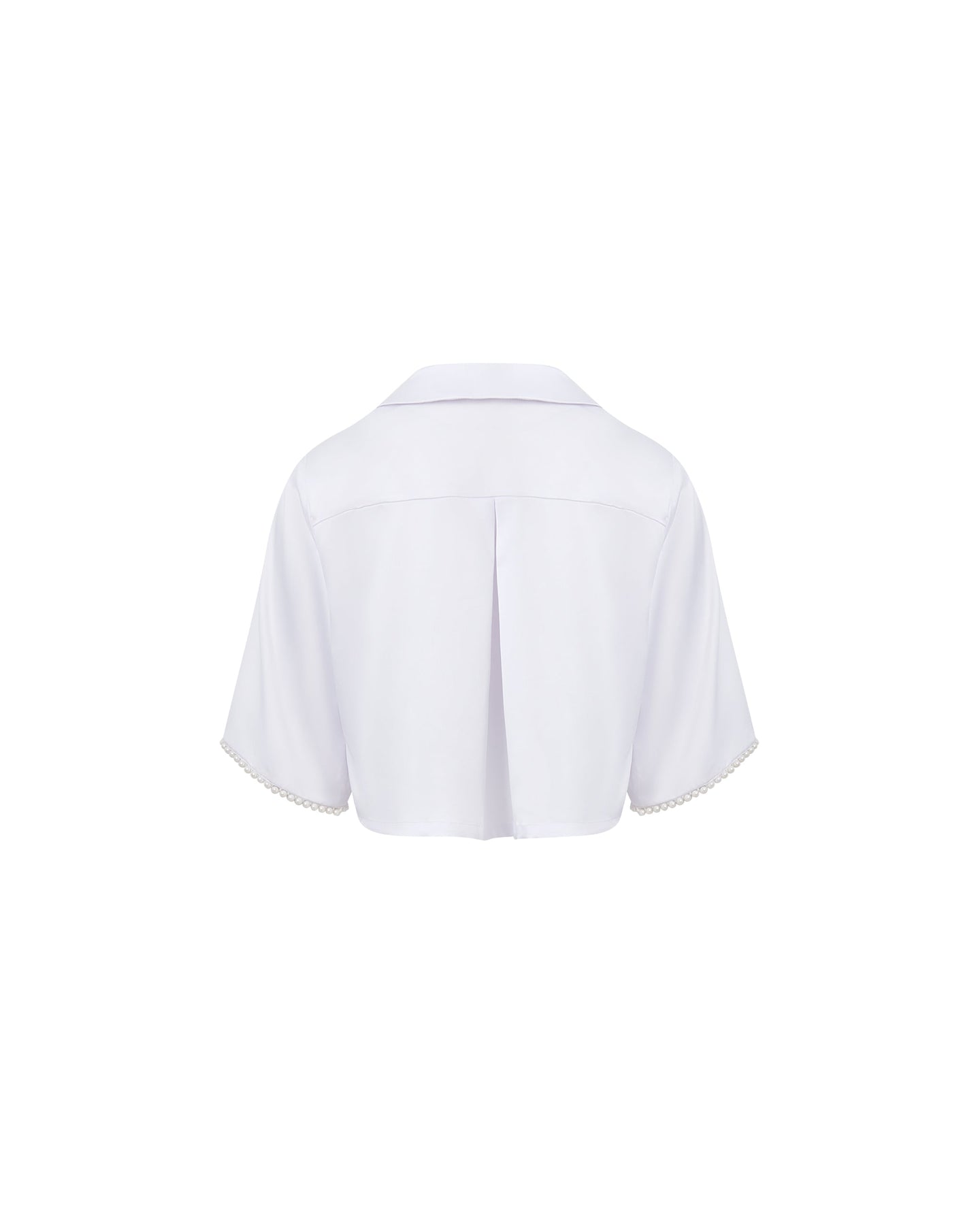 Chic and classic, this luxury satin shirt, finished with pearlescent bead trims, is the ultimate elevated nightwear piece. The cropped length and timeless design make it perfect for brides or anyone looking to add a touch of refined glamour to their loungewear. Wear as a stylish piece too!
