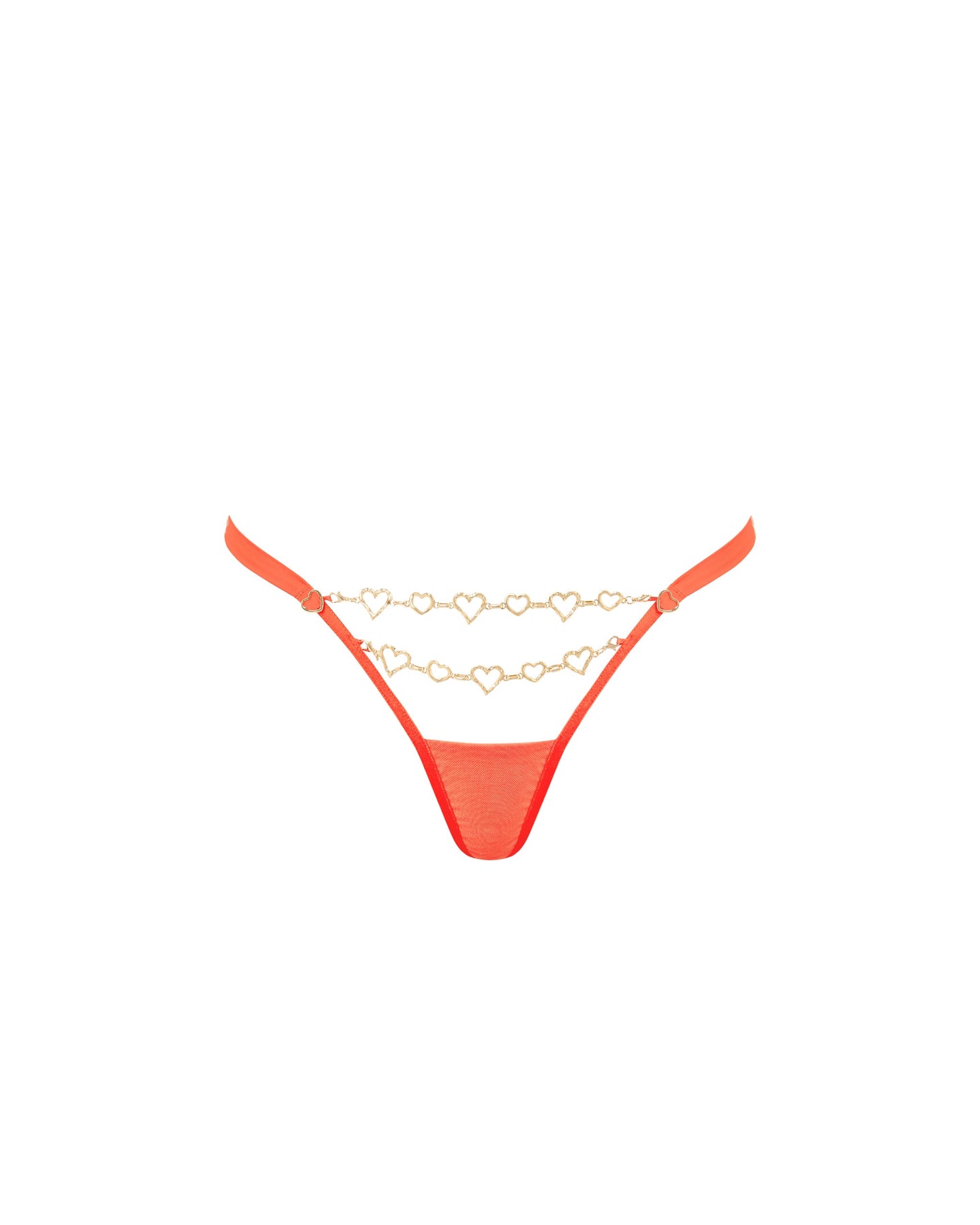 The Phoenix Thong is a real standout piece. Starring gold heart chain details dance across the front, creating movement and intricate decorative design. Wide-set side straps and a delicate rear keyhole add a luxurious touch to the classic G-string silhouette. Finished with a breathable bamboo gusset, it's a thoughtful fusion of comfort and style. Pair with the matching bra for the full look.