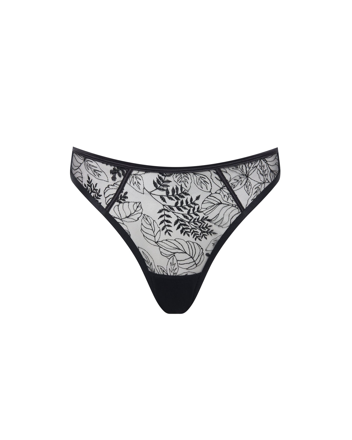 Complete your black lace lingerie collection with the Seraphim High-waist Thong in Black, featuring botanical embroidered lace and a high-rise fit for added coverage. The rear stretch mesh panelling and finish, a gentle and hypoallergenic bamboo popper gusset, ensure comfort and style.