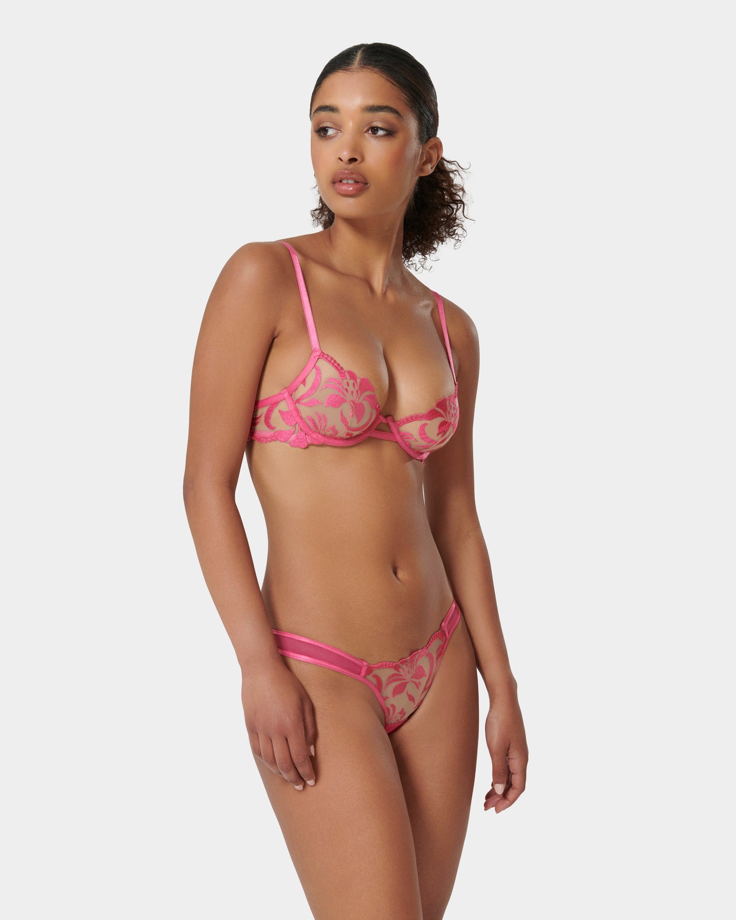 Catching the eye of lingerie aficionados, the Leonora set blends elegance and allure through its intricate, floral-inspired embroidery. Accentuated by Bluebella’s signature sheer mesh, this commanding set features a flattering bra designed to pair seamlessly with either a seductive thong or sleek brief. To cover all your styling desires, we suggest indulging in both for a versatile wardrobe.