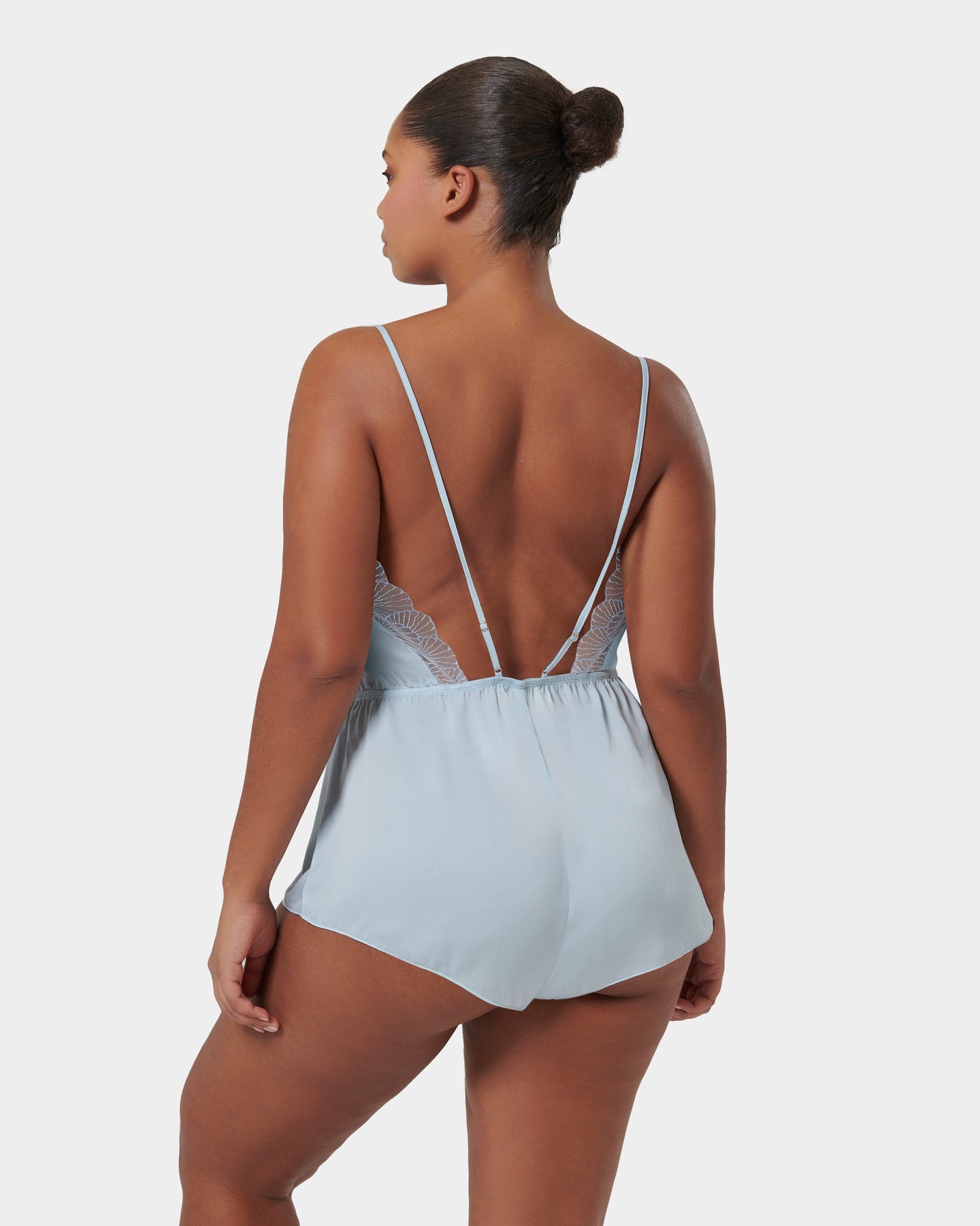 Introducing the Vermont Luxury Satin Teddy in Ice Water Blue, the latest addition to our popular collection. Crafted from luxurious satin, this teddy playsuit combines elegance and comfort effortlessly, night and day.